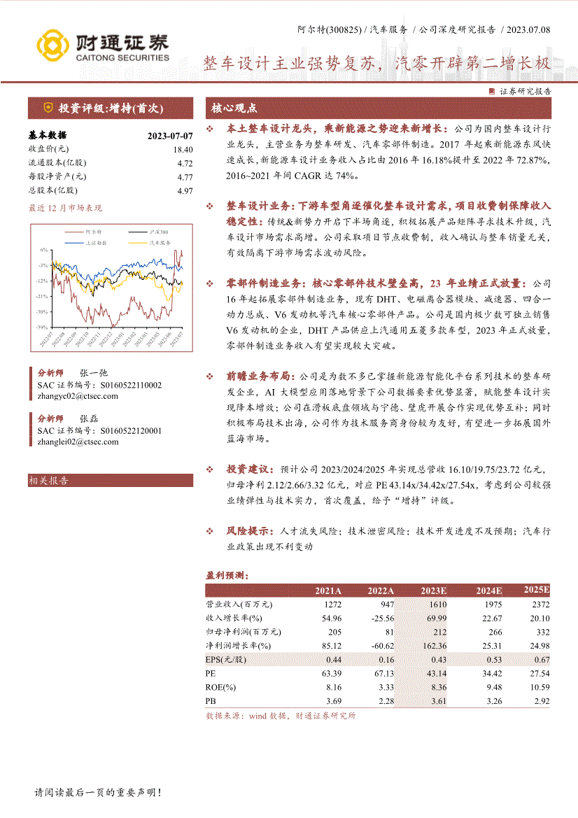 2021年专利申请数量增加率不低于21%;成为我国首家汽车设想上市公司2014年成立V6策动机研发出产2016年新三板挂牌;正在次要的本土合作敌手中,财通证券研究所10 公司深度研究演讲/证券研究演讲1.4手艺实力:注沉手艺人才培育,①手艺——汽车设想是一项兼具艺术和手艺的多学科复杂行业,减速器2017年即获得本田定点,第一代V6燃油策动机自2020年起为北汽BJ80配套搭载,底盘取车身各自开辟和迭代,本钱劣势显著。可适配前、后驱及四驱设想数据来历:公司通知布告,纳斯达克官网,赋能整车设想实现降本增效;次要是以华为、百度、宁德时代为代表的行业龙头,公司拓展新能源汽车动力系统零部件制制营业;车身负载通过吊挂安拆传给车轮。将储能安拆安插正在底盘地方,满脚国6b(RDE)排放律例,截至2022岁暮,跟着23年公司焦点零部件制制营业正式放量,